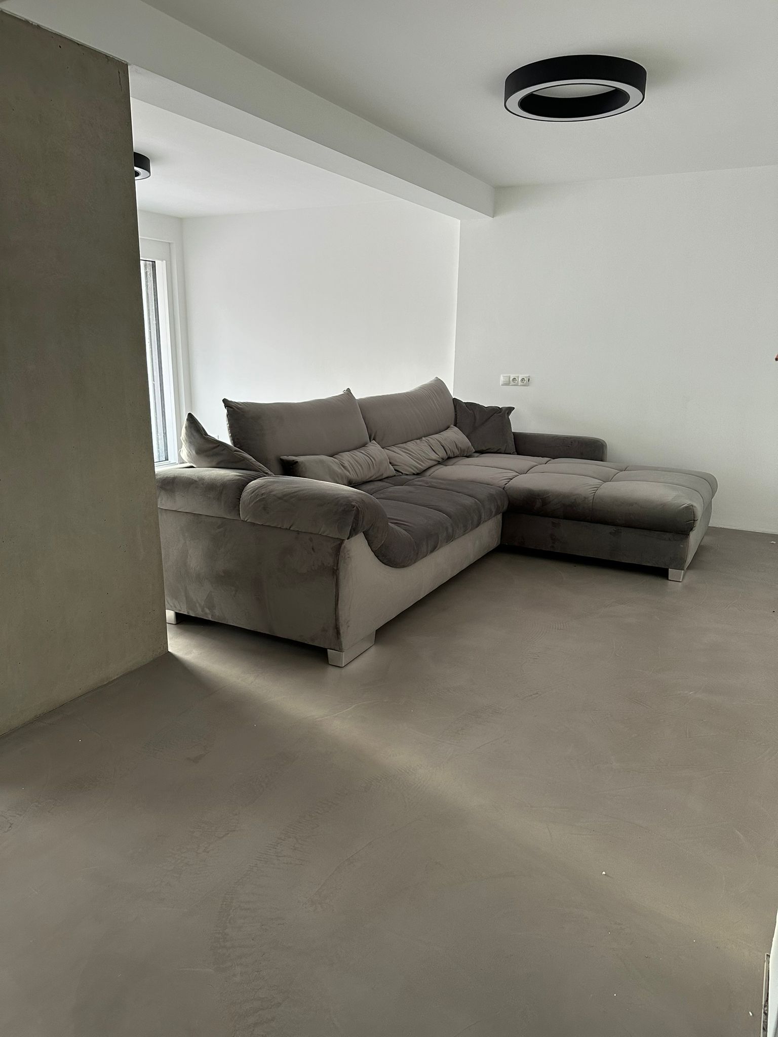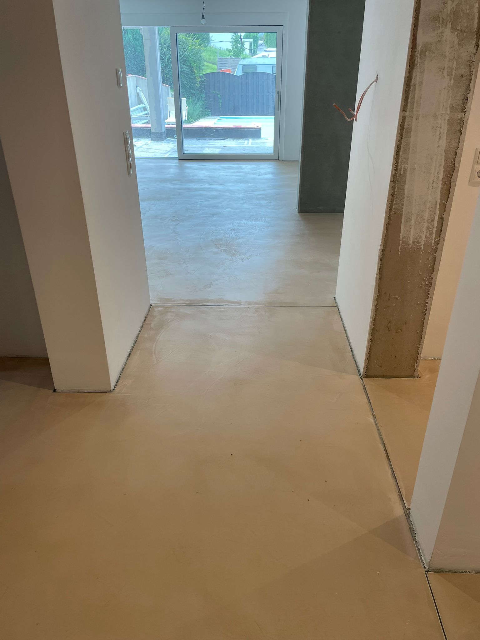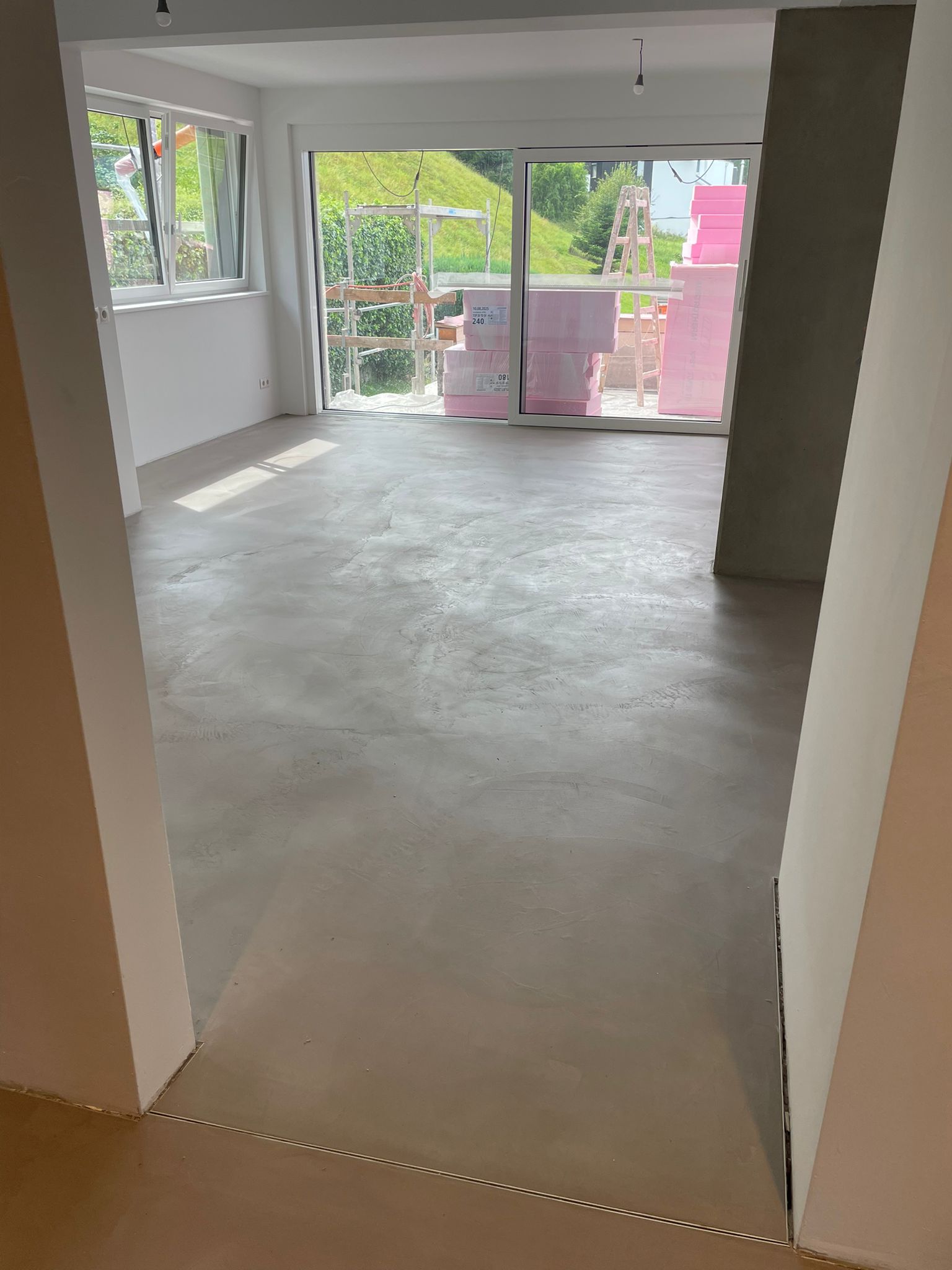 Stampflehmboden Aufbau mit integrierter Fußbodenheizung . Oberfläche geschliffen geölt und mittels Heißwachs vergütet