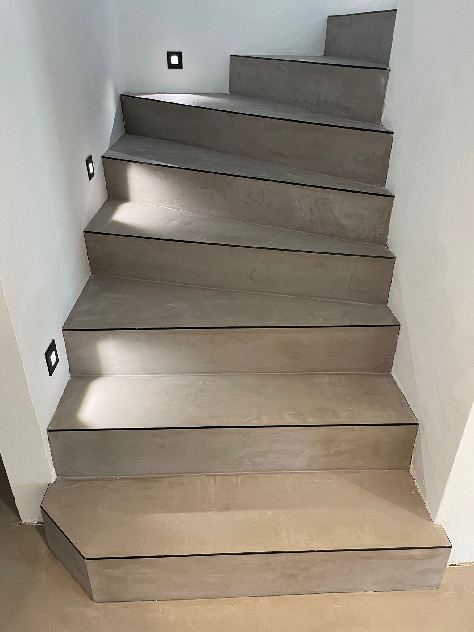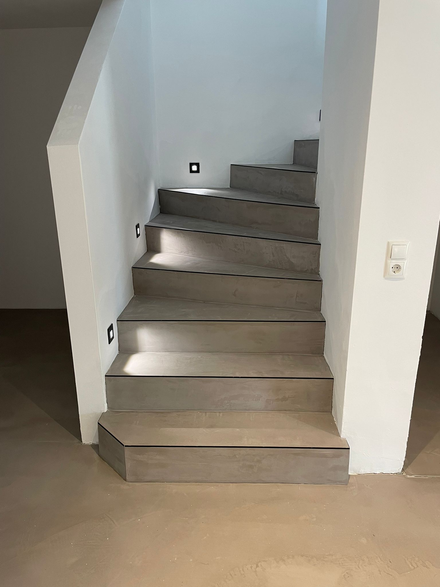 Ofen gespachtelt und geseift pigmentiereter Sumpfkalk.